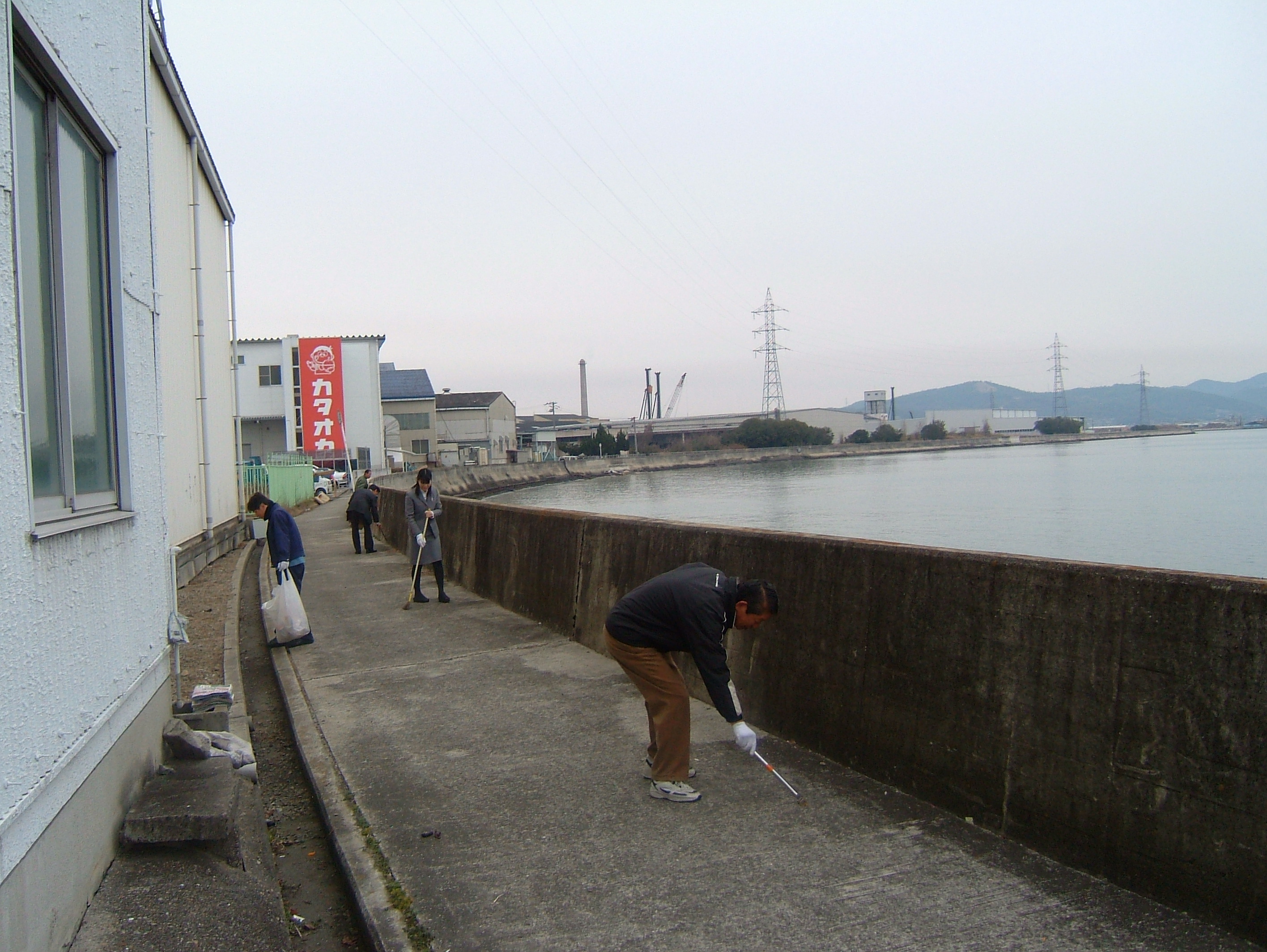 尾道本店付近の海岸道路の清掃作業です。(写真をクリックすると拡大します)