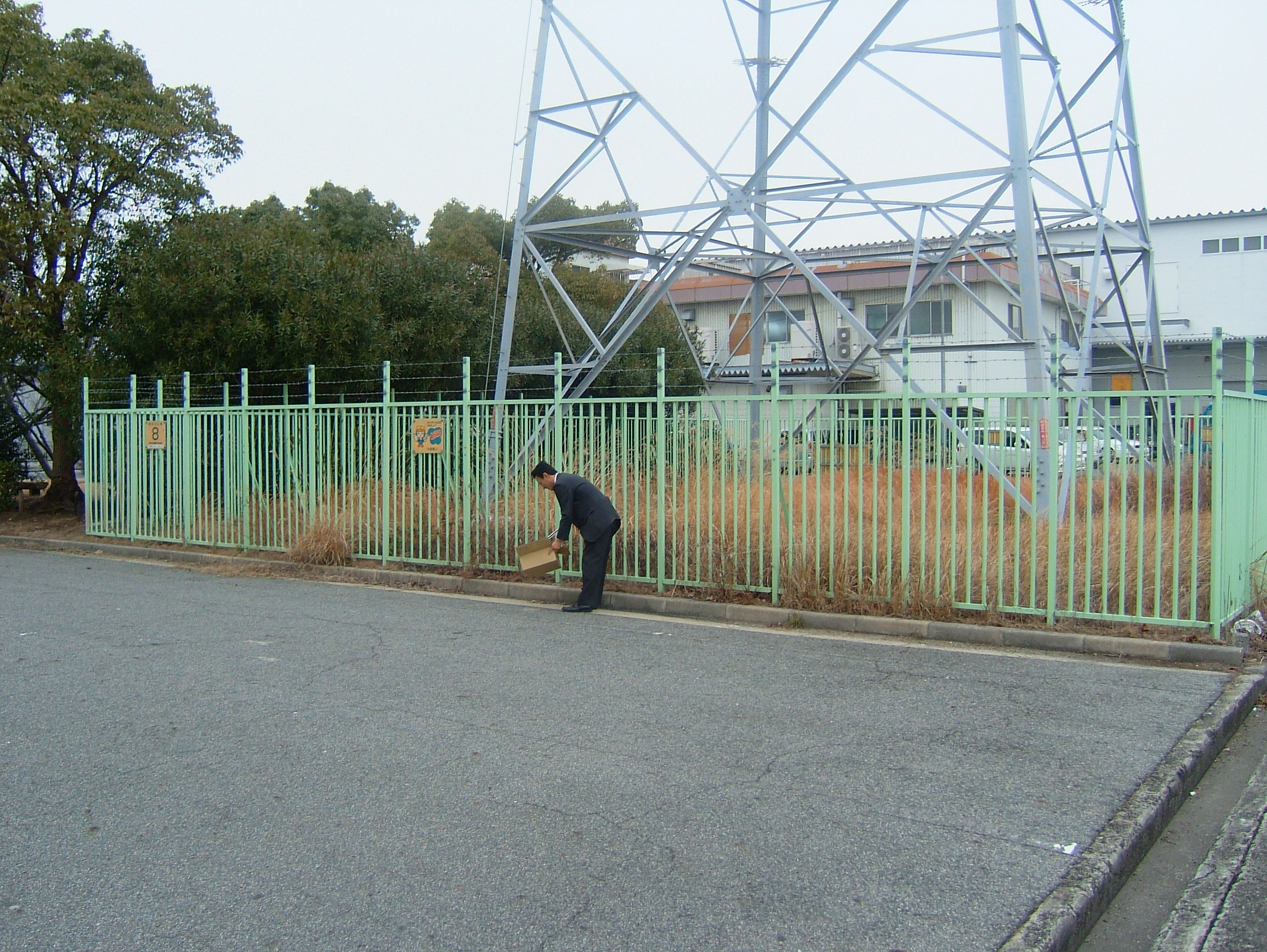 鉄塔の中に投げ込まれたゴミはトングで拾います。