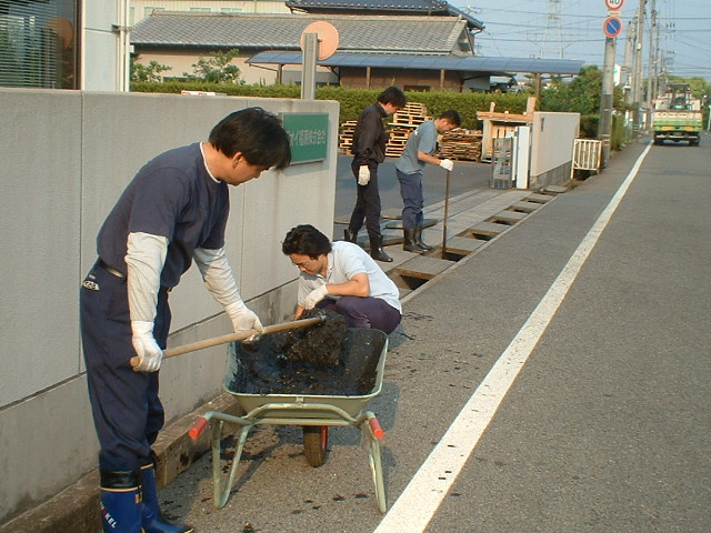自社前の溝掃除です。