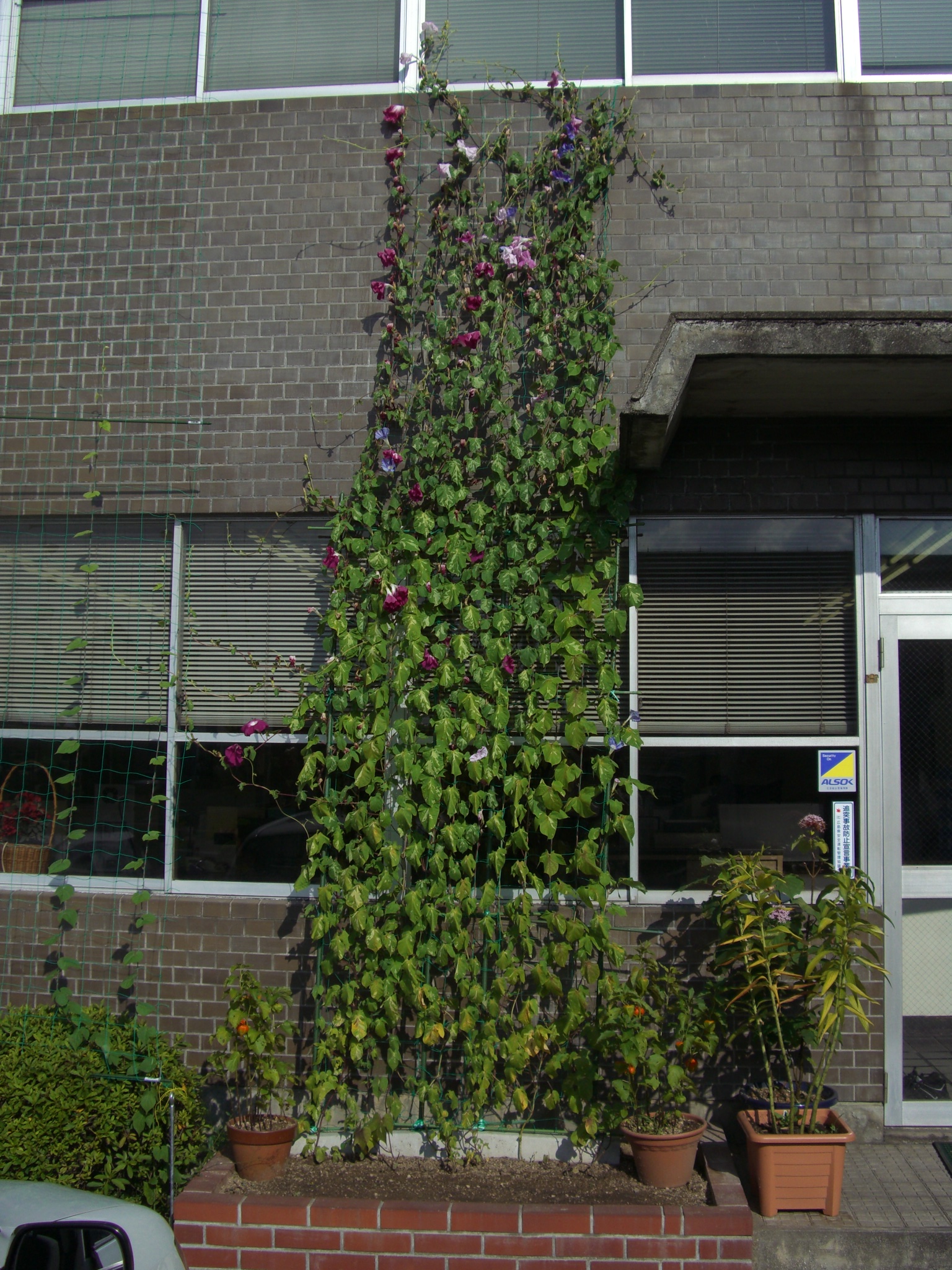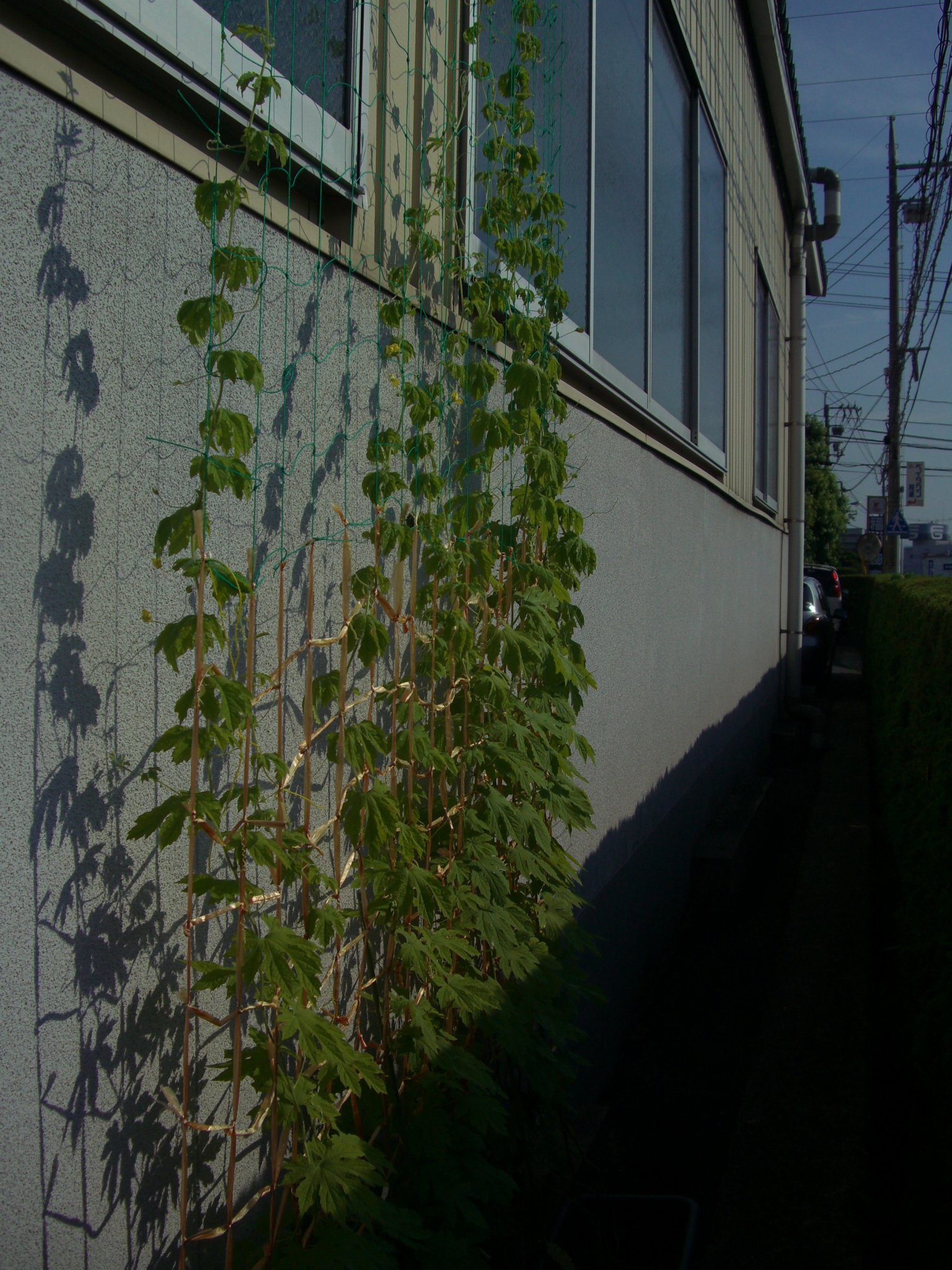 4月度に報告した緑のカーテンがきれいにできあがりました。朝顔、ゴーヤを尾道市の「緑のカーテンコンテスト」に合わせて植えることにしたところ見事に成長しました。以下はその写真の一部です。 朝顔の苗をプランターで苗を育てています。 成長した朝顔を植え替えました。 朝顔が見事なカーテンとなりました。 ゴーヤの苗も同様です。 ゴーヤも成長しています。