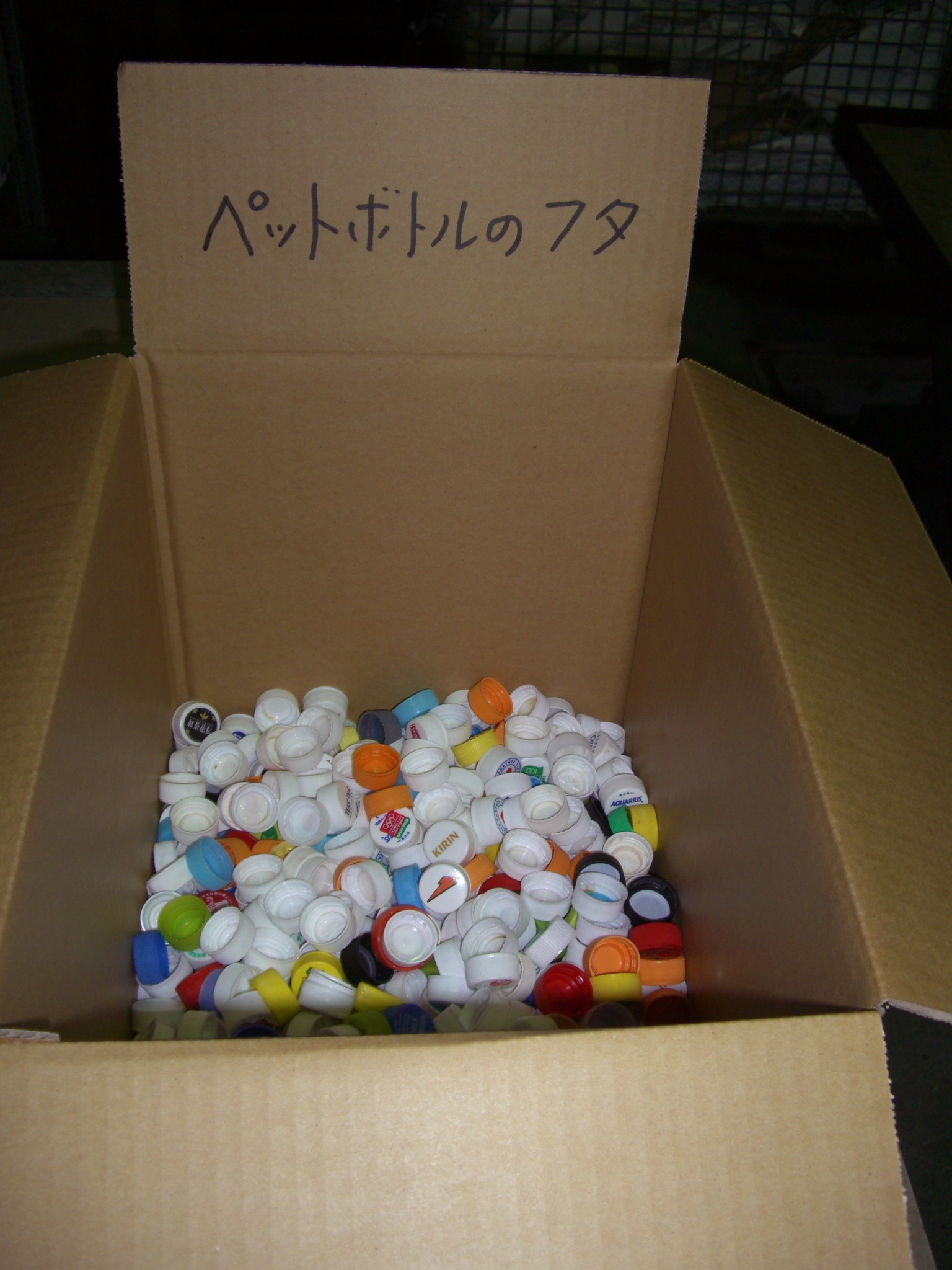 私たち環境に優しい取り組みチームは、ペットボトルのキャップを集めると、世界の子供たちにポリオワクチンを送る事が出来ることを知り、みなさんの協力を得て日々活動に取り組んでいます。 何故、ペットボトルのキャップでポリオワクチンが買えるのか?それは、ペットボトルのキャップは今までリサイクルにかからず、プラスチックゴミとして処分されていました。それをとある会社に売却し、その売上金を「世界の子供にワクチンをという日本委員会」に寄付しています。 キャップ400個で1キロとなり、この売却金が21円。現在ポリオワクチンは1個20円で買えるらしく、キャップ400個で1人の命が救える事になります。世界ではワクチンの不足が原因で、毎年多くの子供達が命を落としています。私達は小さい頃に受けた予防接種のおかげで、ポリオ(小児麻痺)や、ハシカ(麻疹)、ジフテリアなどの6大感染症から守られていますが、世界にはそれすら接種する事の出来ない子供達がたくさんいます。一握りの命しか救うことが出来ませんが、私たちが今まで何も考えずに捨てていたペットボトルのキャップで、人の命が救えるという事をこの取り組で知ることができたので、この1年間にかぎらず、ひきつづきこの活動に取り組んで行きたいと思います。みなさん協力よろしくお願いします。