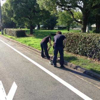 今月も暑い中活動を行いました。今後も綺麗な公園であるように活動を続けていきます。 側溝の砂を掬っています。 終了後。沢山草やゴミを回収しました。