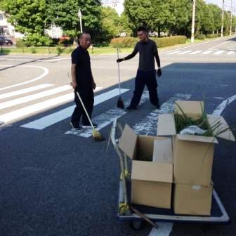 落ち葉などをほうきで掃き、ゴミを拾っております。